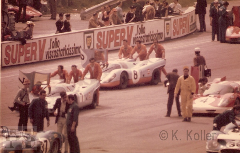 und insgesamt sieben Porsche 917K von verschiedenen Teams traten um den Gesamtsieg an.