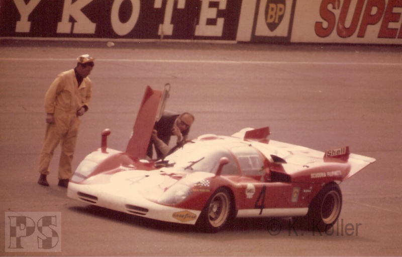 Arturo Merzario im Ferrari 512S. Nach einem Reifenschaden musste Kurt Ahrens den Wagen abstellen.