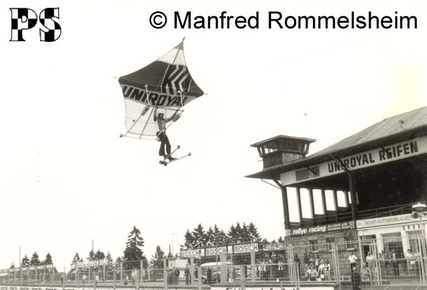 Flugdrachen auftreten. Im Schlepptau eines Porsche-Rennwagens flog Bernd Rauschenwald